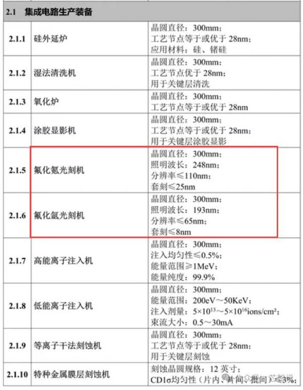 其实,早在6月20日,工信部就曾发布了《首台(套)重大技术装备推广应用指导目录(2024年版)》公示,集成电路生产设备一栏当中,就有公示一款氟化氪光刻机和一款氟化氩光刻机。随后在9月9日,工信部又将该通知重发了一遍: