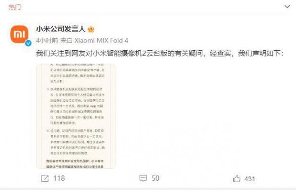 近日,有媒体报道了关于一位女性在卧室安装的小米摄像头出现异常事件,称该摄像头突然传出陌生男子的声音。对此,小米公司于9月13日通过其发言人发表正式声明,回应称已根据用户反馈取回相关设备并进行检测,结果显示目前设备处于正常运作状态。
