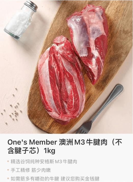 比如牛肉,此前用户只清楚不同部位有不同的价格,买牛腱子会买最便宜的,不清楚阿根廷草饲、澳洲谷饲的区别,不明白腱子肉、腱子心、金钱腱等的划分。1号会员店的标准是只卖谷饲牛肉,同时会把腱子肉的不同等级划分清楚,告诉用户每一个产品的标准是什么。