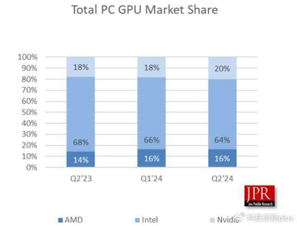 全球PC GPU市场:intel占64%,Nvidia占20%,国产份额为零