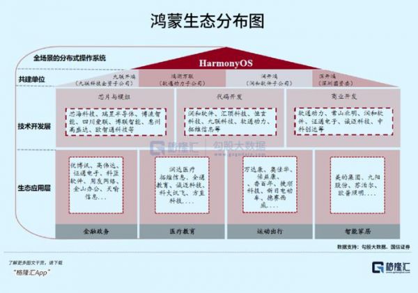 生态伙伴开发的商用OS覆盖了金融、教育、医疗、工业等多个领域,例如,润和软件发行的国内首款全场景智能物联操作系统HiHopeOS,拓维信息成为了华为矿鸿生态的使能合作伙伴,九联科技与华为在通信模块的合作贡献了超过10%的营业收入等等。