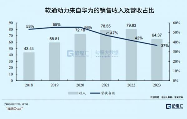2018-2022年,软通动力来自华为的收入实现连年增长,从2018 年的43.44亿元增至2022年的 79.83 亿元,年复合增长率达16.43%。2023年公司来自华为的收入为64.37亿元,收入占比有所下滑,为36.61%。