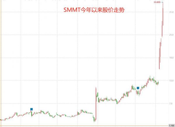 买下依沃西海外核心市场权益的SMMT股价持续暴涨,也从另一个维度对这款中国创新药给出了“掌声”。