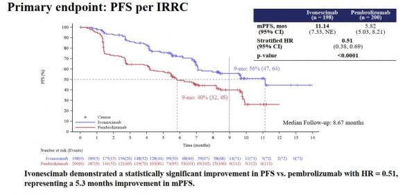 患者生存时间PK:依沃西约为K药的2倍