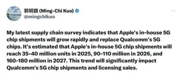 郭明錤:苹果自研5G基频芯片最快可能到2025年量产