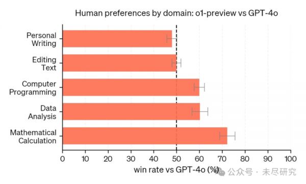 在人们更看重推理能力的领域,o1-preview 更受偏爱。