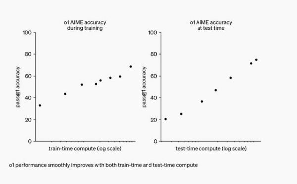o1 的一个重要变化就是增加了分配给推理(inference,即大模型的使用)阶段的算力,推理阶段计算(test-time compute)重要性提升。