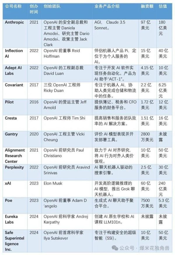 由于理念分歧, OpenAI的11位创始人中已有8位离开公司。此外,大量核心员工也纷纷出走,许多人选择创办或加入了OpenAI的竞争对手。