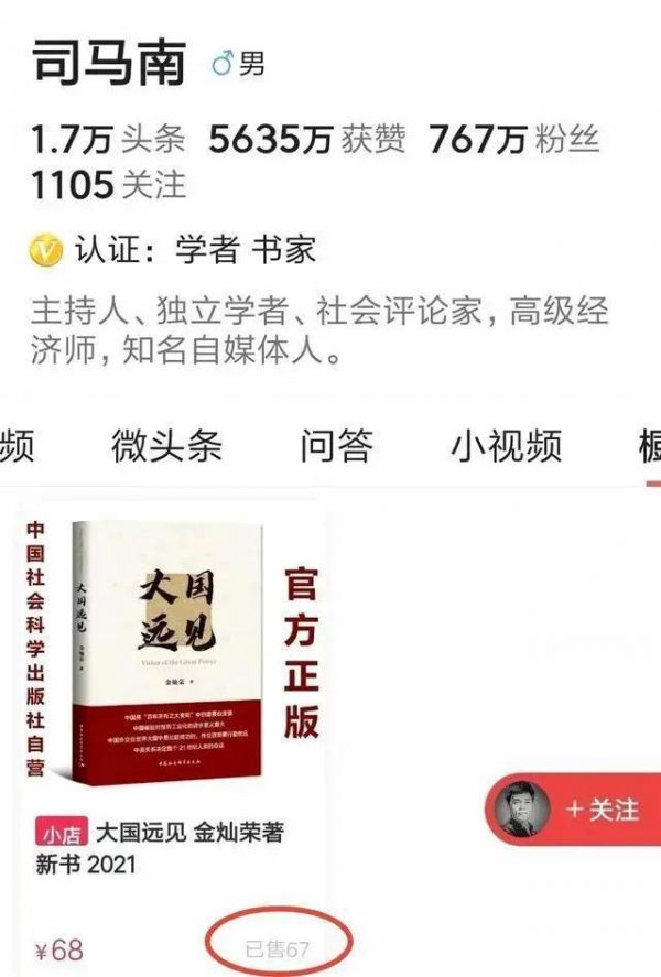 这是一种怎样的“流量陷阱”呢?就是,司马南的用户群太low了,不仅没有思辨的能力,连消费力都没有。作为一个数千万粉丝的超级大V,司马南带货卖书,却只卖了几十本而已。它的粉丝根本就不读书,也不思考。