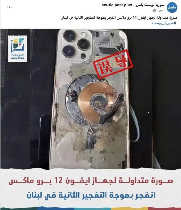 同一日,社交平台上流传的一张图片将一台疑似iPhone 12 Pro Max手机的残骸与黎巴嫩通讯设备爆炸事件联系在一起。