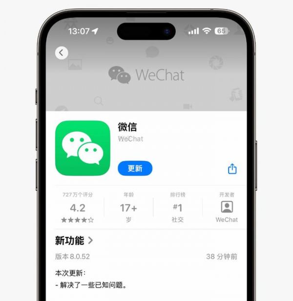 昨日小编刚给大家分享微信正在逐步覆盖“朋友圈发实况照片”功能,昨日下午,iOS微信就又推送了8.0.52版本的更新,我们打开App Store,搜索「微信」,点更新即可升级至最新版。