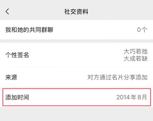 而且据微信官方解释,此时间一般是第一次添加该朋友为联系人的时间。如果你在还未添加对方时,对其设置过朋友权限,如「仅聊天」、「不让他看」、「不看他」或「加入黑名单」等,则此时间为第一次对该朋友设置权限的时间。