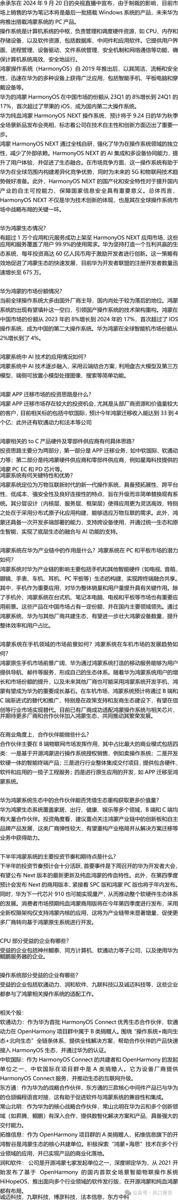 华为纯血鸿蒙面世,带来哪些投资机会?