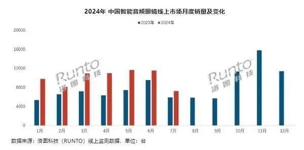 提起智能眼镜,我们首先想到的可能是AR(增强现实)、VR(虚拟现实)、MR(混合现实)等产品,但在细分市场中,也有一些企业着力于研发功能相对较少,价格也更加实惠的智能音频眼镜。洛图科技(RUNTO)线上监测数据显示,今年1-7月国内智能音频眼镜线上市场销量约为7万台,同比增长45.3%,销售额为8160万元,同比增长57.6%,预测今年全年线上市场规模可达15万台。