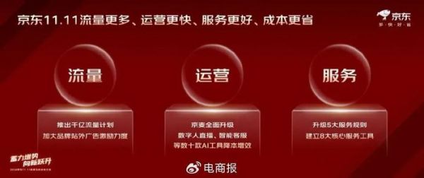 此外,京东更是喊出了“流量更多、运营更快、服务更好、成本更省”的响亮口号,将重心聚焦于助力商家降本增效,实现销售增长。