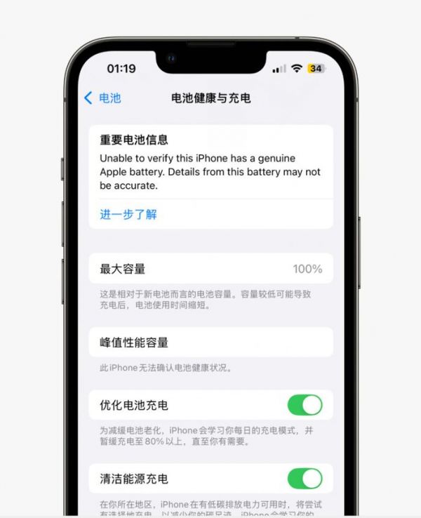 而且似乎也不弹窗了!苹果只会在电池选项的设置里提醒用户“无法验证此iPhone电池是正品Apple电池。此电池的详细信息可能不准确”。