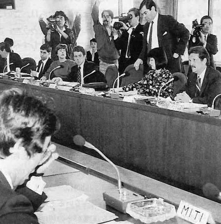 ▲日美半导体协议谈判现场正面狙击日本的同时,美国还通过扶植诸如韩国半导体等办法,继续对日本半导体赶尽杀绝。到1990年代中期,日本半导体彻底陷入颓势,至今未能东山再起。