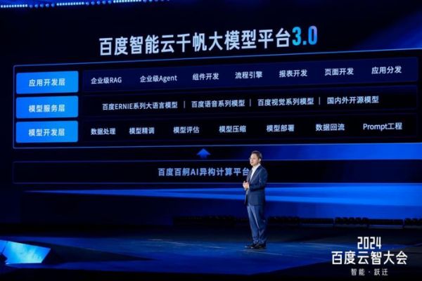 对于模型厂商而言,这是一个充满机遇的新时代。9 月 25 日,2024 百度云智大会上,百度智能云不仅展示了其在大模型产业落地方面的最新实践,还发布了包括基础设施、大模型、开发工具链、AI 原生应用等多个云与 AI 产品。在这次大会上,百度智能云千帆大模型平台 3.0 的发布成为了焦点。基于“加速企业大模型产业落地”的理念,千帆 3.0 旨在帮助企业更高效地实现产业 AI 化。