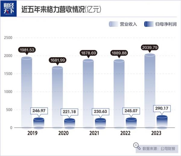这一切也体现在格力的业绩上。2023年,格力营收再度重回2000亿元门槛,达到2050.18亿元。根据格力电器公布的2024年中报,格力上半年营业总收入第一次突破千亿元。董明珠的目标显然不会止步于此,年初她提出未来五年格力年营收目标瞄准4000亿元,这也意味着,格力电器变革的步伐还得加快。
