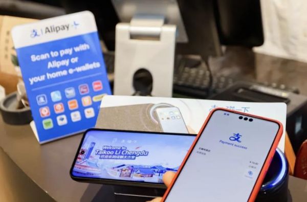 9月25日,支付宝宣布升级国际数字化便捷支付解决方案。境外宾客在中国使用支付宝,既能“扫一下”付款,也可“碰一下”支付了。据介绍,“碰一下”支付设备率先在成都太古里商圈启用,支持屏幕中英文交互和英语播报服务,接下来也将向全国推广。