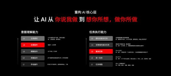 在发布会上,廖清红参照自动驾驶的五个级别,把意图理解和任务执行这两大AI核心能力,分成了5个级别。而Flyme AIOS综合考虑了用户的使用场景,带来了3个等级的AI能力,包括L2级别的主动信息提示、L3级别的任务剧本、L4级别的任务机器人,实现了从辅助到全场景自动执行。