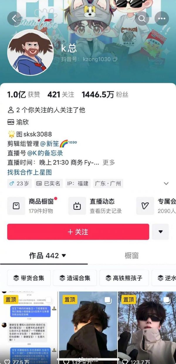 其中,尤为引人注目的就是k总了。其成长轨迹与小杨哥有着惊人的相似。两人均从普通学生起步,通过视频创作积累人气,最终转型为带货主播并迅速走红。