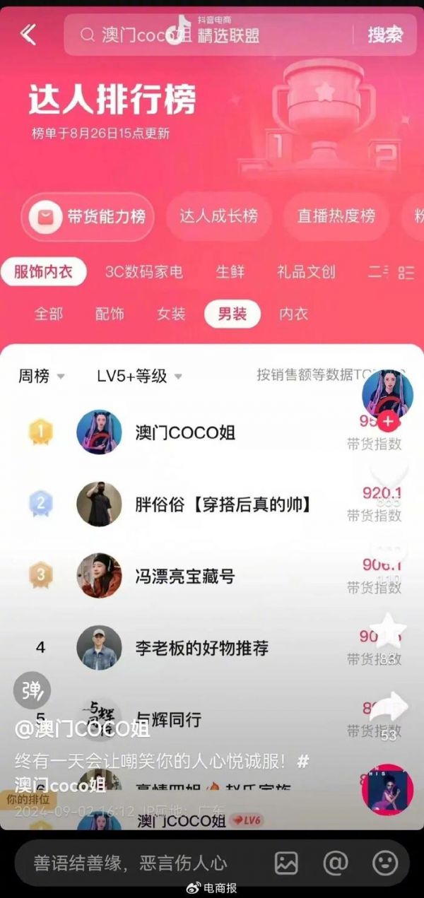 近30天内,她的抖音账号涨粉近50万,直播带货销售总额超过7000万元,成为了抖音带货男装领域的一姐。