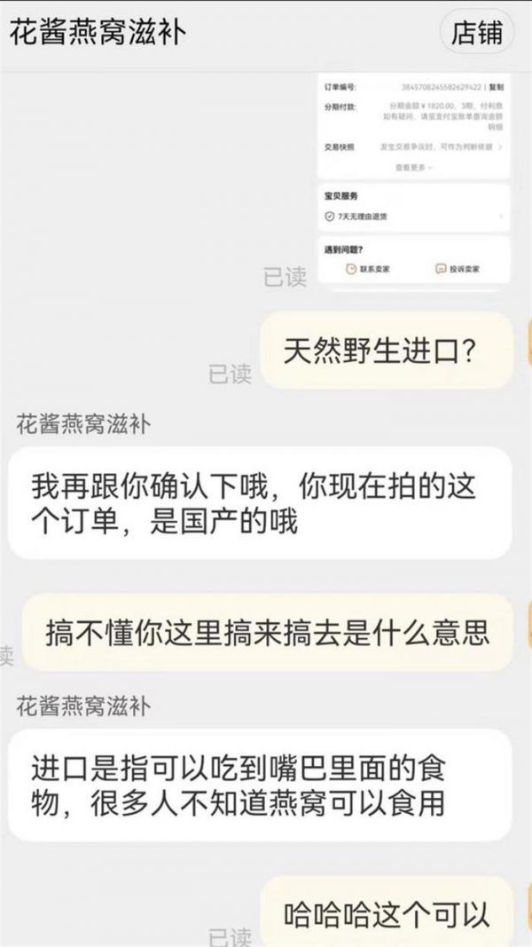 野生燕窝卖家辩称“进口”就是进嘴里,厚颜无耻的“冷笑话”一点也不好笑