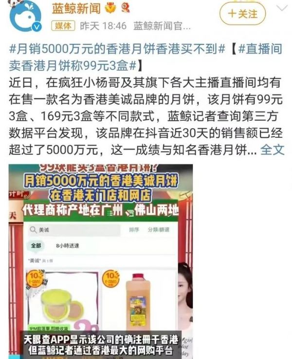 首先公布的是三只羊带货“香港美诚月饼”“澳洲谷饲牛肉卷”的调查情况。