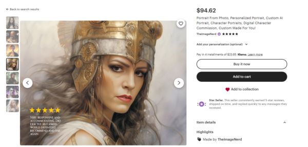 截至9月26日盘后,Etsy的市值已高达63.97亿美元,折合人民币约448.5亿。但一些变化,正在发生:近两年,随着AIGC工具的普及,Etsy上出现了大量由AI生成的虚拟产品。