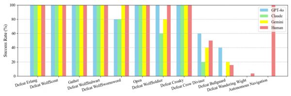 在上文提到的《黑神话·悟空》游戏中,研究团队设定了12个任务,其中75%涉及战斗,并使用包括GPT-4o、Claude 3.5 Sonnet和Gemini 1.5 pro等VLMs进行了基准测试。