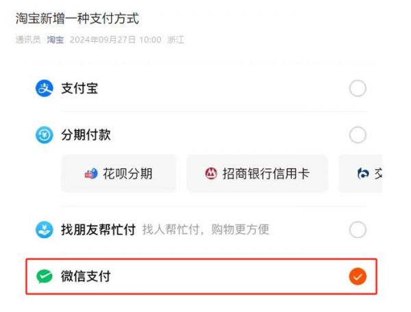淘宝官宣:今日起在淘宝付款时可用微信支付