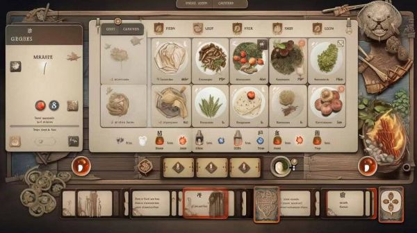 但它足够漂亮:UI界面是水墨黑白的,以凸显食物色彩,美术设计有各种水墨工笔画:芝麻研磨器、冰糖炖雪梨、甲壳虫……打开胃之书的第一眼,伴随着研磨芝麻的动画,是一阵震动,仿佛石碾就在你手中辗磨食物。