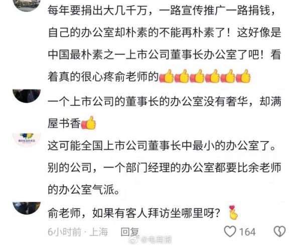 俞敏洪晒办公室,网友灵魂发问:客人来了坐哪儿?