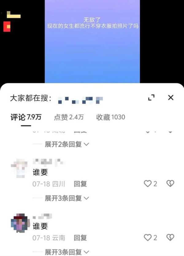 评论区里全是不穿裤子、只包住隐私部位的照片,还有人直接留言:“想看的私。”
