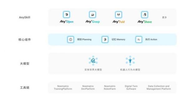 穹彻智能发布的具身大脑 Noematrix Brain 包括自研实体世界大模型和机器人行为大模型,使大脑具备规划、记忆、执行的核心能力。