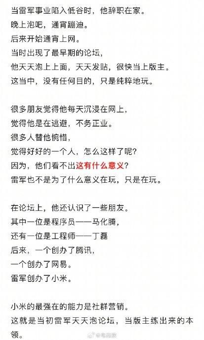 雷军回忆当年:玩BBS论坛认识的马化腾和丁磊。