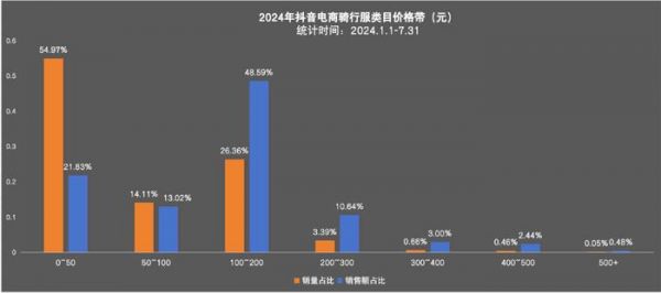 骑行服此前一直是国际大牌的天下,定价居高不下。抖音商家便从中低价格带切入,打破了骑行服的高价门槛。有米有数数据统计,2024年上半年抖音电商骑行服类目主力的价格带是0-50元以及100-200元。
