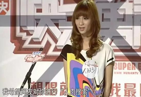 他长卷发,瓜子脸,穿着蓝丝袜,踩着高跟鞋,说话声音也很特别,观众、评委都惊了。