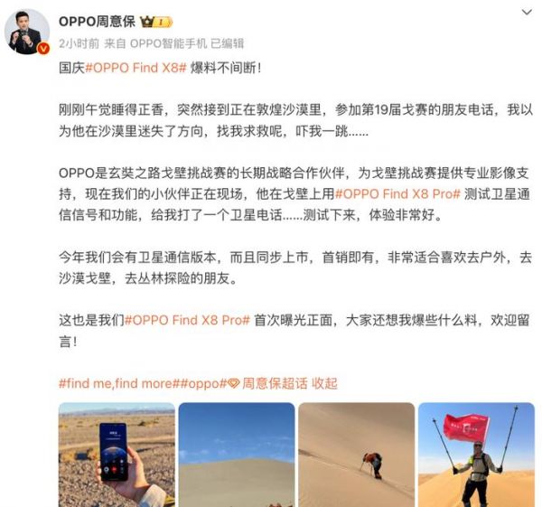 而在最近的官方预热中则提到,OPPO Find X8 Pro将会提供卫星通信版本,而且同步上市,首销即有。