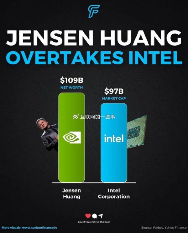 一人敌一企!英伟达股价狂飙,黄仁勋个人身价超越整个英特尔市值