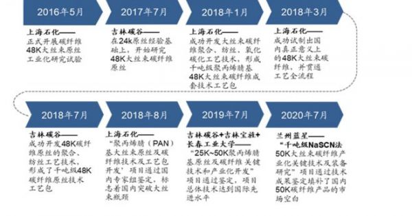 国内大丝束原丝及碳纤维关键化技术突破时间点