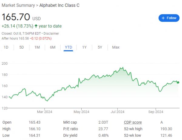今年以来,谷歌母公司Alphabet股价累计上涨逾18%。