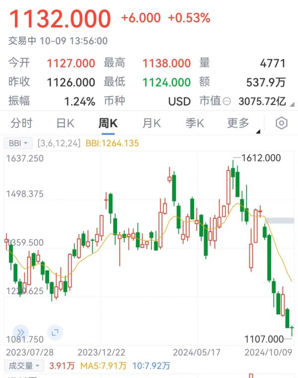 在公布盈利预期后,三星电子股价持续走低,当天下跌1.2%。事实上,三星电子近期的市场表现,也早已创下其所在的伦敦证券交易所近两年的最差成绩,相较于今年最高点1612美元/股,目前三星电子股价已经跌超480美元/股,跌幅高达30%;按此折算,三星电子市值较今年7月最高点时也已跌超1318亿美元,三个月跌掉人民币9315亿余元。