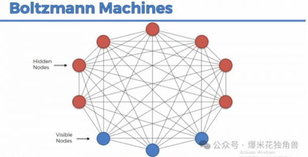 在此基础上,Hinton对Hopfield网络进行了优化,提出了Boltzmann Machine。Boltzmann Machine不仅继承了Hopfield网络的基础结构,还通过引入统计物理学中的Boltzmann分布和最小能量函数来进行系统状态的描述与优化,使得网络逐渐向最优状态(即最低能量状态)收敛。