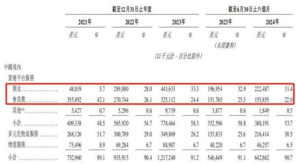 2021年至2023年,货拉拉境内司机会员费和向司机收取的佣金在公司总收入中的占比分别为47.8%、54.1%和57.7%,逐年提升。2024年上半年,这一占比虽下降至53.4%,但仍占据总收入的半壁江山。