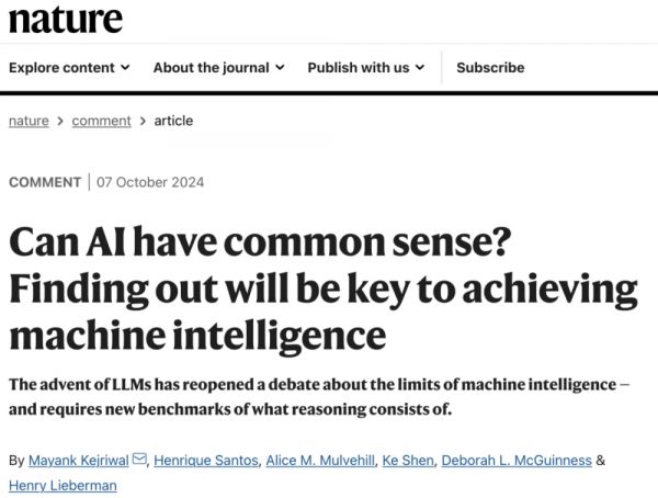 近日,南加州大学信息科学研究所首席科学家 Mayank Kejriwal 等人在权威科学期刊 Nature 上发文:“Can AI have common sense? Finding out will be key to achieving machine intelligence”,讨论了人工智能(尤其是 LLMs)在展示常识方面的挑战,并提出了改进评估方法和未来研究方向的建议。