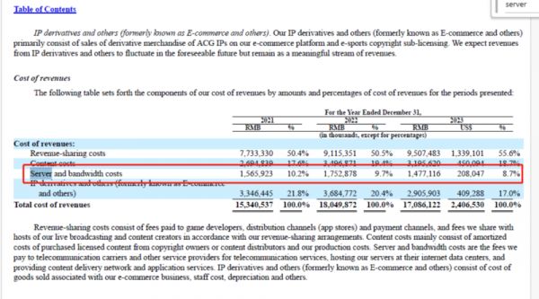再拿常见的长视频平台来说,2020年全年爱奇艺在带宽费用上的支出就达到了24亿元;B站21年的财报显示一年下来带宽费用也有15亿,已经占了全公司支出的10%以上,通过各种手段才降到了去年的7%。