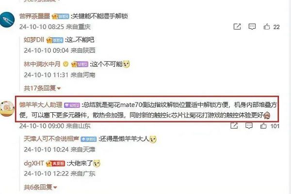 认为侧边指纹解锁用于千元机,与华为Mate70系列的定位不符。