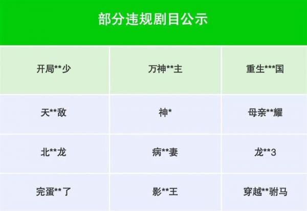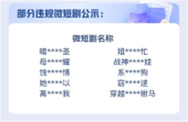 部分违规短剧剧目公示:
